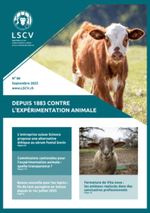 L’entreprise suisse Scinora propose une alternative éthique au sérum fœtal bovin (SFB) | Commissions cantonales pour l’expérimentation animale : quelle transparence ? | Bonne nouvelle pour les lapins : fin du test pyrogène en Suisse depuis le 1er juillet 2025 | Fermeture de Vita nova : les animaux replacés dans des sanctuaires professionnels | Le point sur l’actualité politique au niveau fédéral avec Nico Müller | Rapport d’activités 2024 et Résumé du PV de l’Assemblée Générale Extraordinaire du 10 mai 2025 |